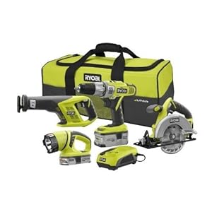 Ryobi ZRP844 One-Plus 18-Volt Cordless Lithium-Ion 4-Piece Combo Kit Factory-Reconditioned AutoShift drill, Circular saw, Reciprocating saw, Work light, Battery, Compact battery, Dual chemistry charger, Tool bag $179.99 + Free Shipping |