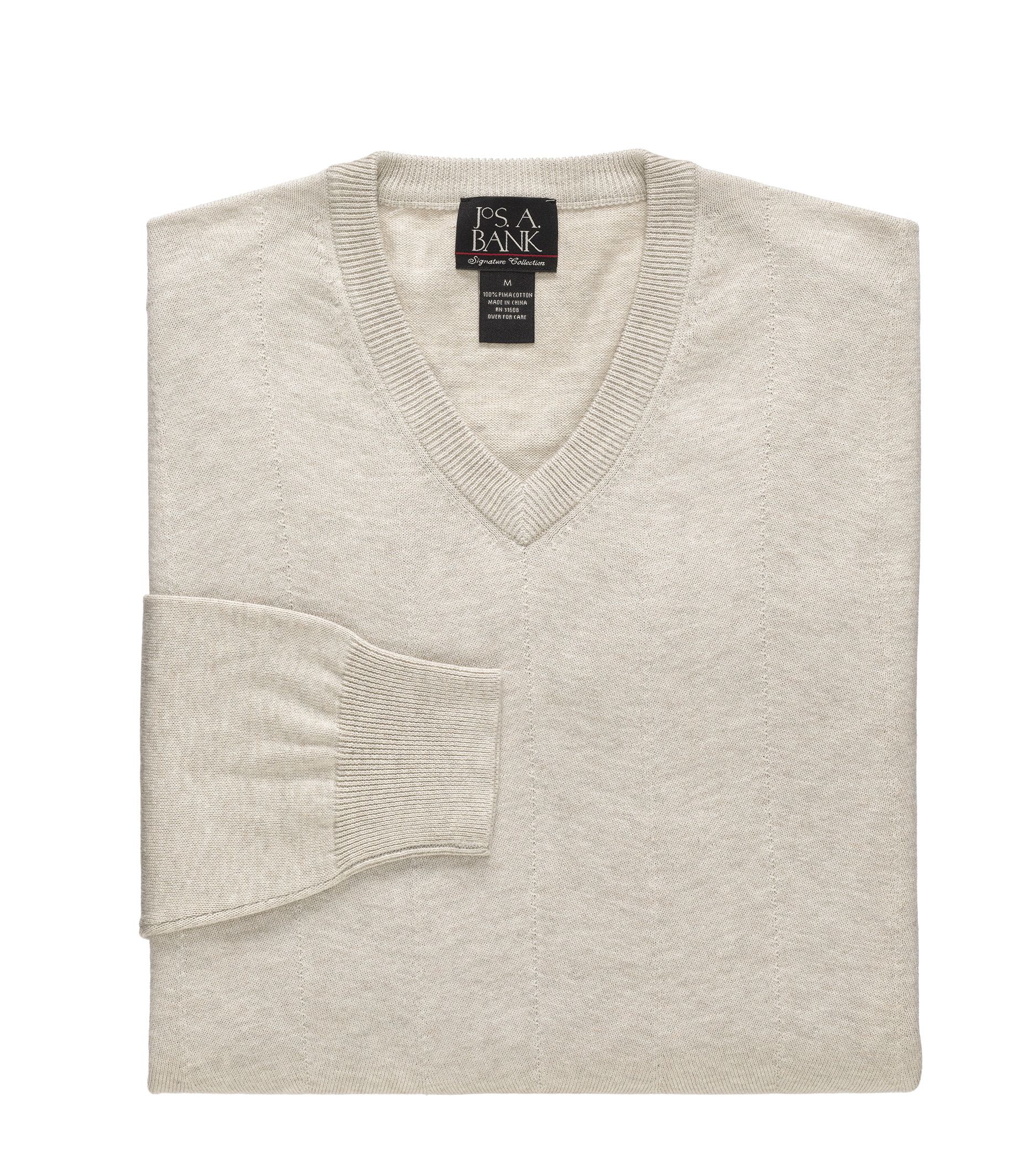 | Jos. A. Bank Signature Pima Cotton V-Neck Textured Sweaters Sale! $22.49 + %5.95 Shipping or Free shipping on orders over $195. |